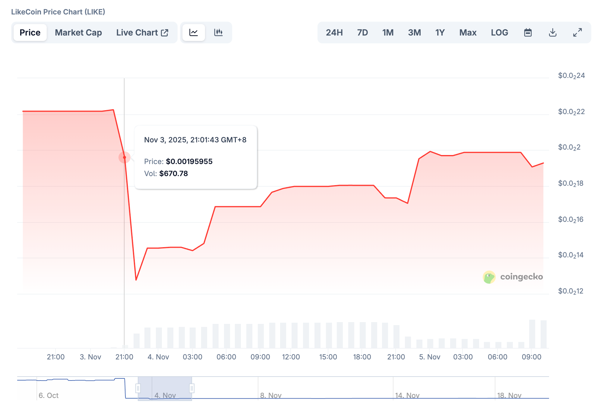 LikeCoin v3 從去年初提出,至月前大致開發完成,並在九月一日的社群會議中,在用戶的見證下鑄幣。時至十月,隨著正式推出日子逼近,我們向 Coingecko 和 CoinMarketCap 兩大資訊平台提交更新,其中 Coingecko 反應迅速,數日後便上線 LikeCoin v3 的資料,把原有的 LikeCoin v2 改為 likecoin-old,停止更新數值。