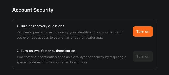 問題一:你會打開 Substack 的 2FA 嗎?